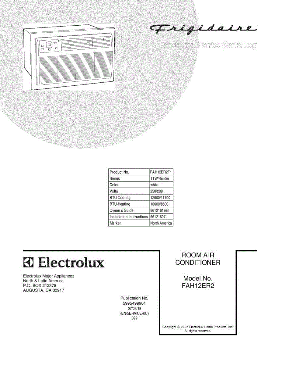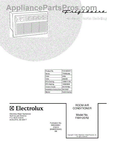 Parts for Frigidaire FAH12ER2T1: 01 - Cover Parts