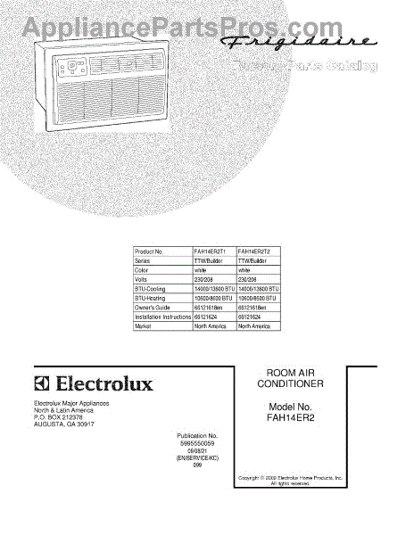 Parts for Frigidaire FAH14ER2T2: 01 - Cover Parts