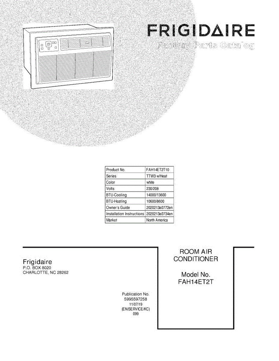 Parts for Frigidaire FAH14ET2T10: 01 - Cover Parts