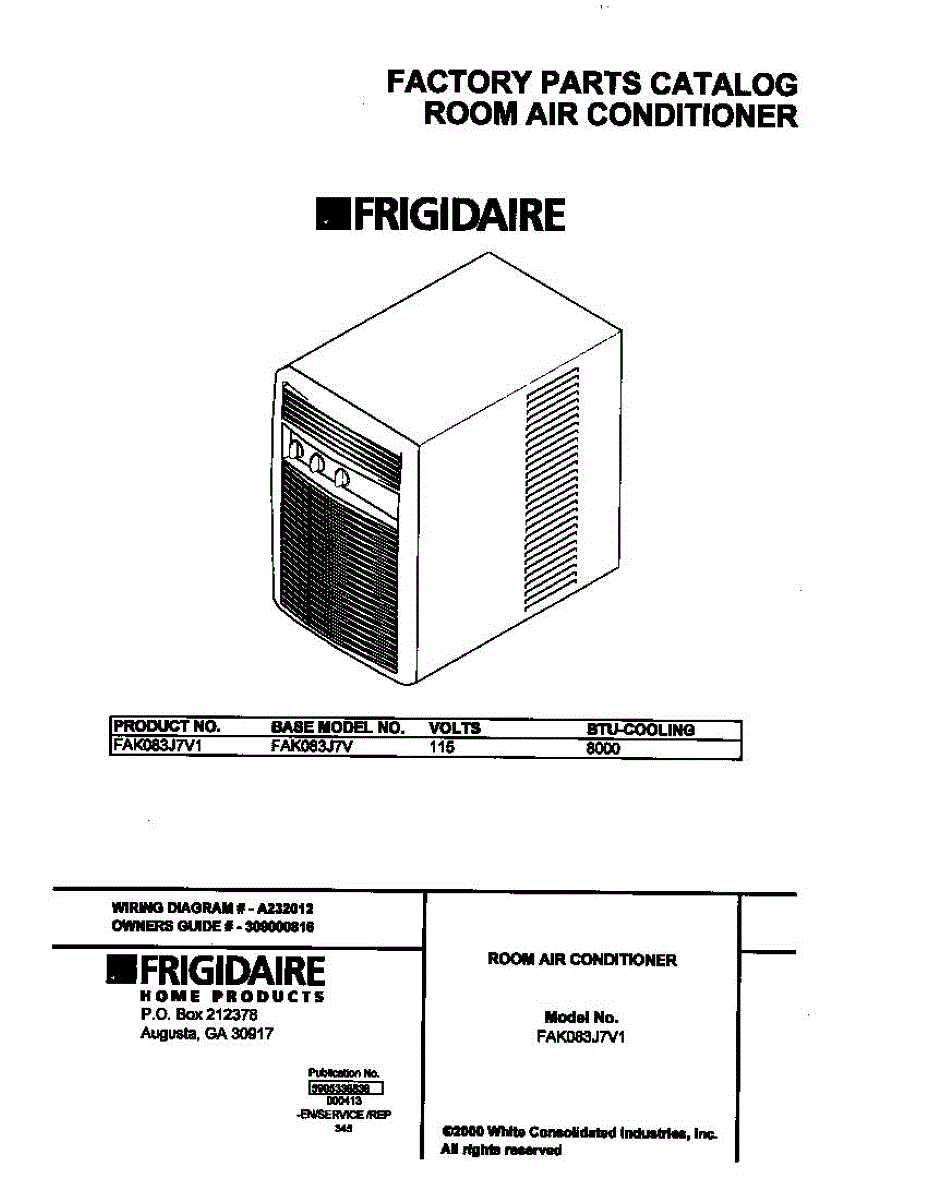 Parts for Frigidaire FAK083J7V1: 01 - Cover Parts