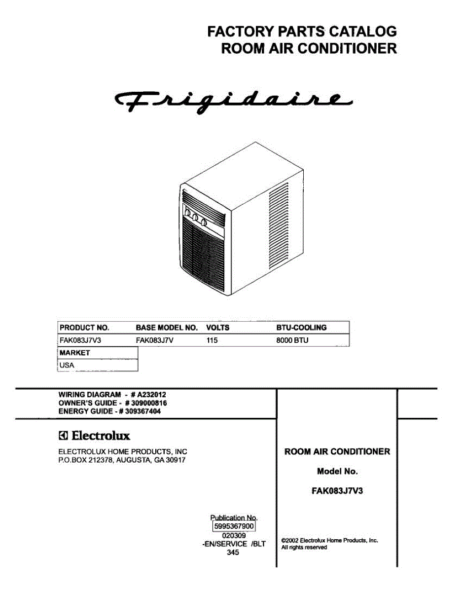 Parts for Frigidaire FAK083J7V3: 01 - Cover Parts