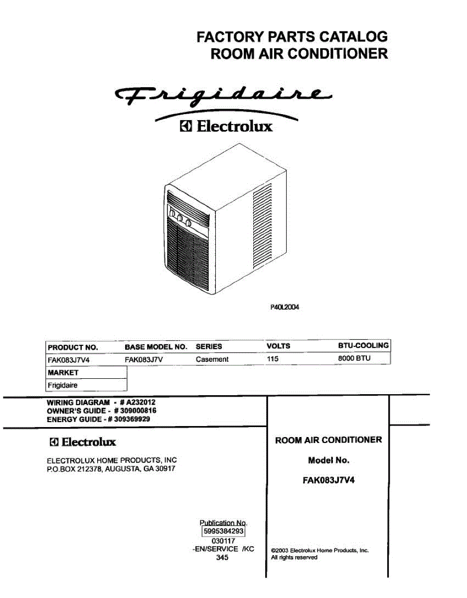 Parts for Frigidaire FAK083J7V4: 01 - Cover Parts