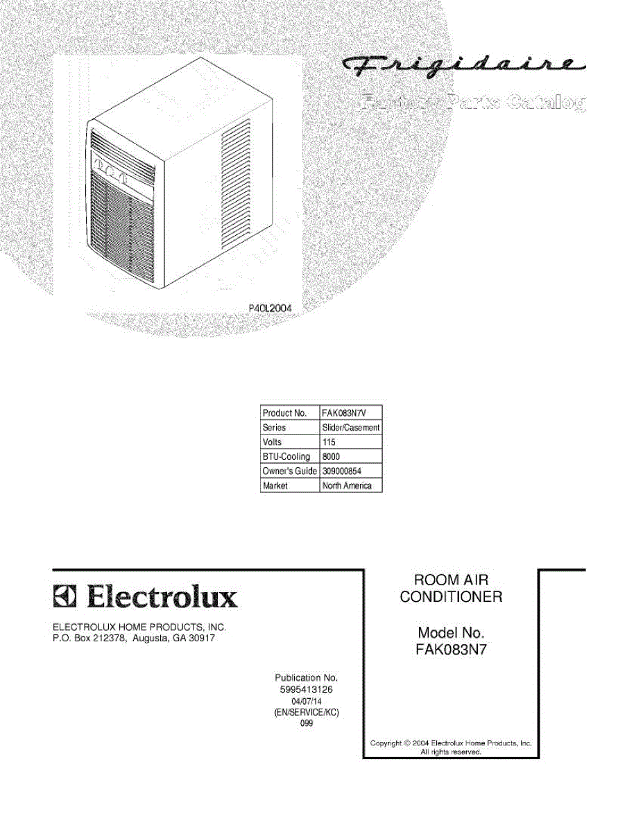 Parts for Frigidaire FAK083N7V: 01 - Cover Parts
