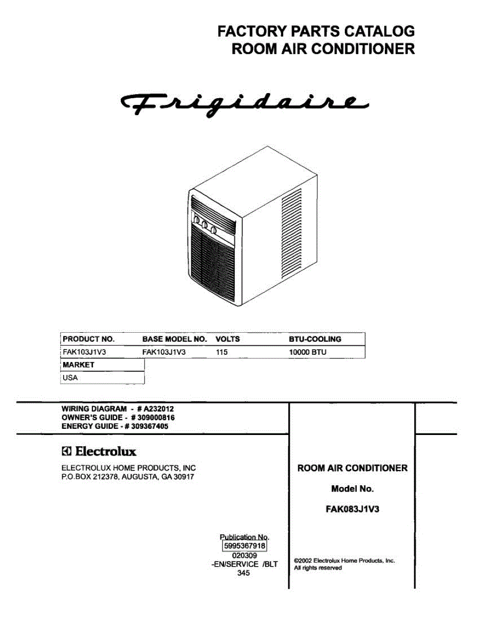 Parts for Frigidaire FAK103J1V3: 01 - Cover Parts