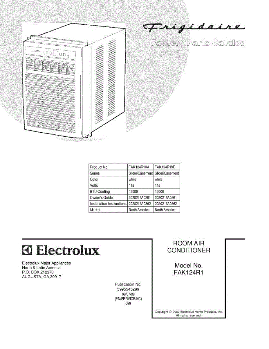 Parts for Frigidaire FAK124R1VA: 01 - Cover Parts