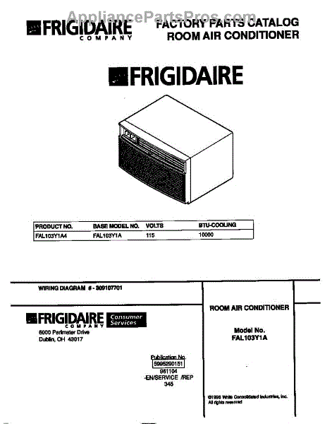 Parts for Frigidaire FAL103Y1A4: 01 - Cover Parts