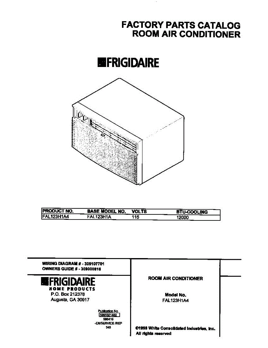 Parts for Frigidaire FAL123H1A4: 01 - Cover Parts
