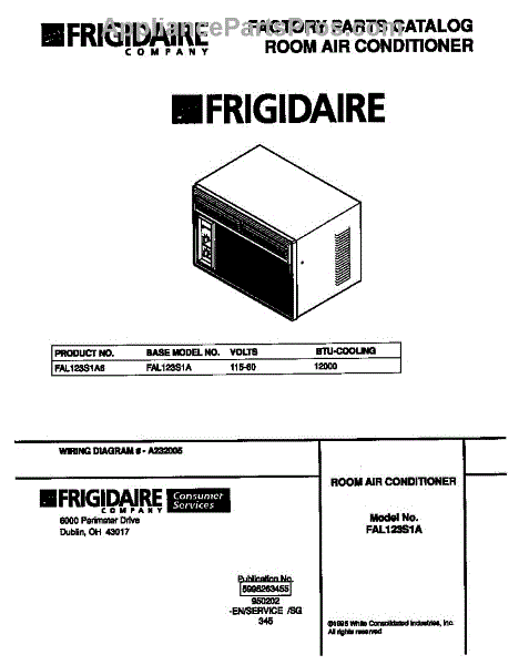 Parts for Frigidaire FAL123S1A6: 01 - Cover Parts