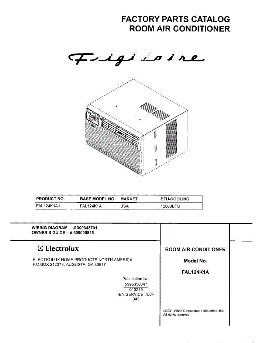 Parts for Frigidaire FAL124K1A1: 01 - Cover Parts