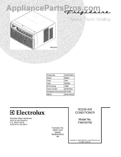Parts for Frigidaire FAM187R2A1: 01 - Cover Parts