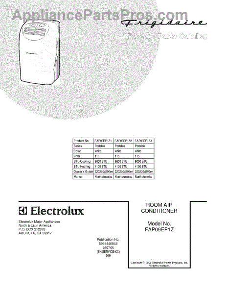 Parts for Frigidaire FAP09EP1Z2: 01 - Cover Parts