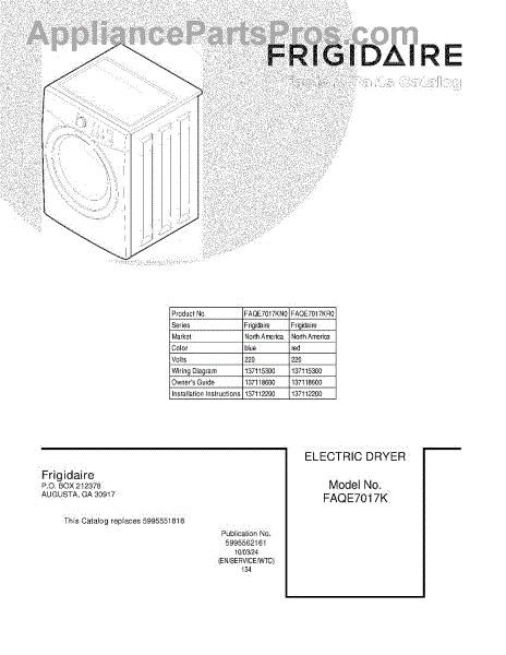 Parts for Frigidaire FAQE7017KR0: 01 - Cover Parts