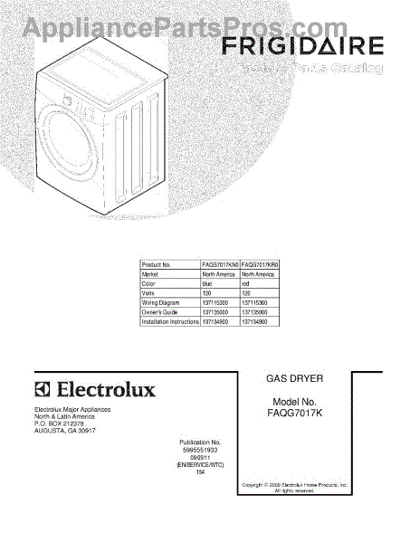 Parts for Frigidaire FAQG7017KN0: 01 - Cover Parts