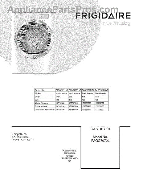 Parts for Frigidaire FAQG7072LA0: 01 - Cover Parts