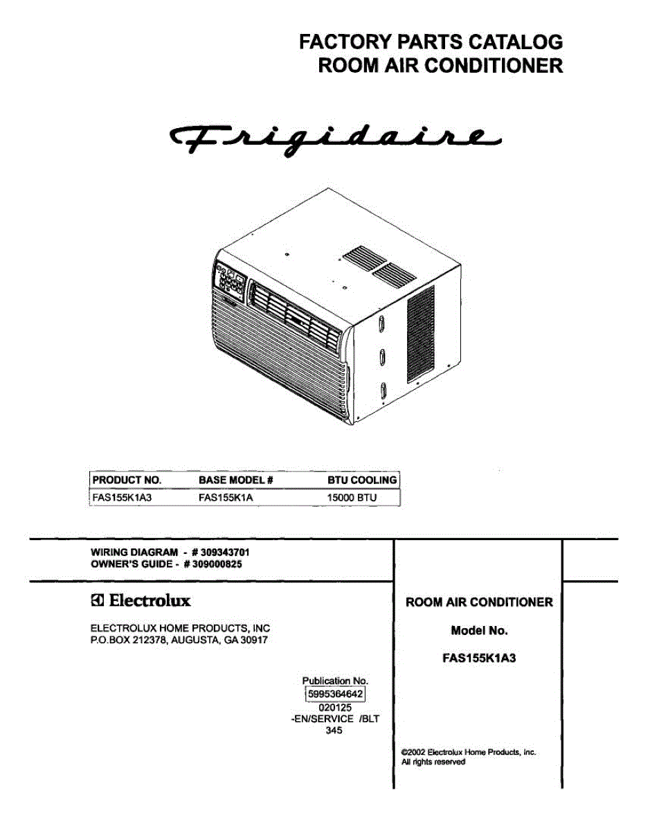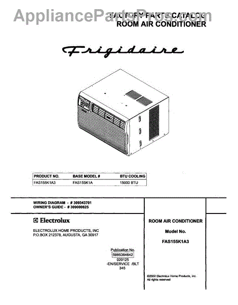 Parts for Frigidaire FAS155K1A3: 01 - Cover Parts