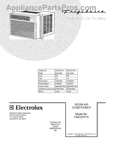 Parts for Frigidaire FAS157P1A2: 01 - Cover Parts