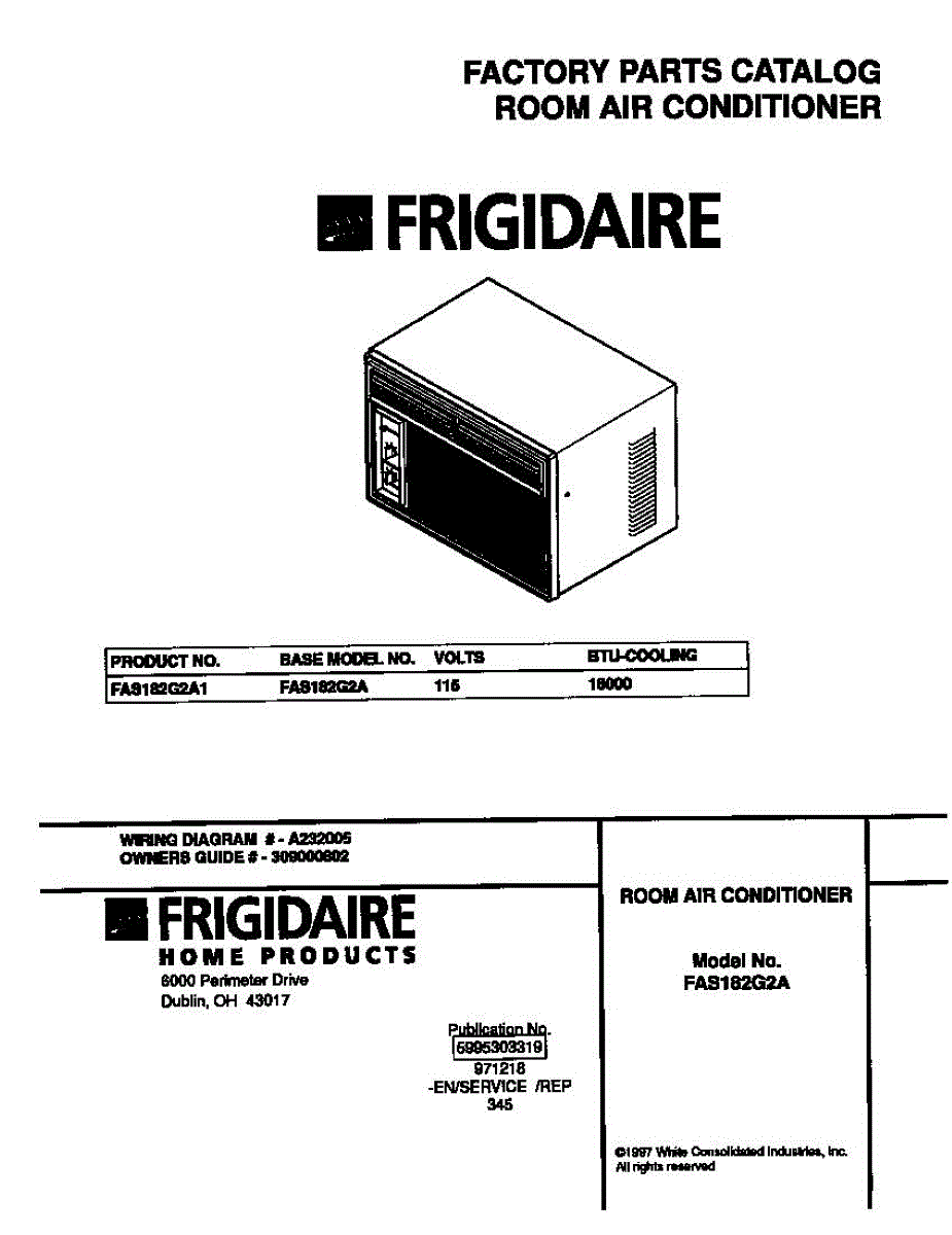 Parts for Frigidaire FAS182G2A1: 01 - Cover Parts