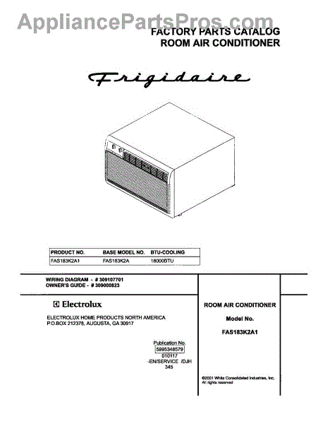 Parts for Frigidaire FAS183K2A1: 01 - Cover Parts