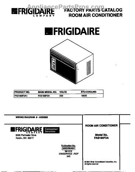 Parts for Frigidaire FAS185F2A1: 01 - Cover Parts