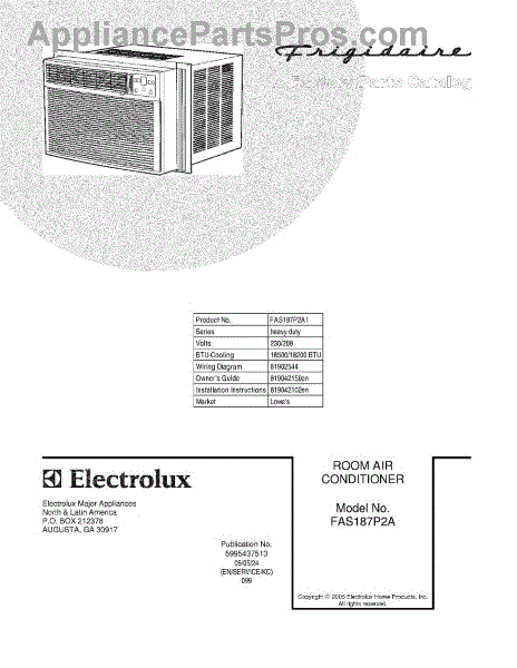 Parts for Frigidaire FAS187P2A1: 01 - Cover Parts