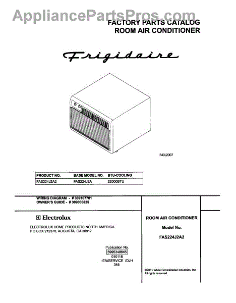 Parts for Frigidaire FAS224J2A2: 01 - Cover Parts
