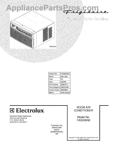 Parts for Frigidaire FAS226N2A2: 01 - Cover Parts