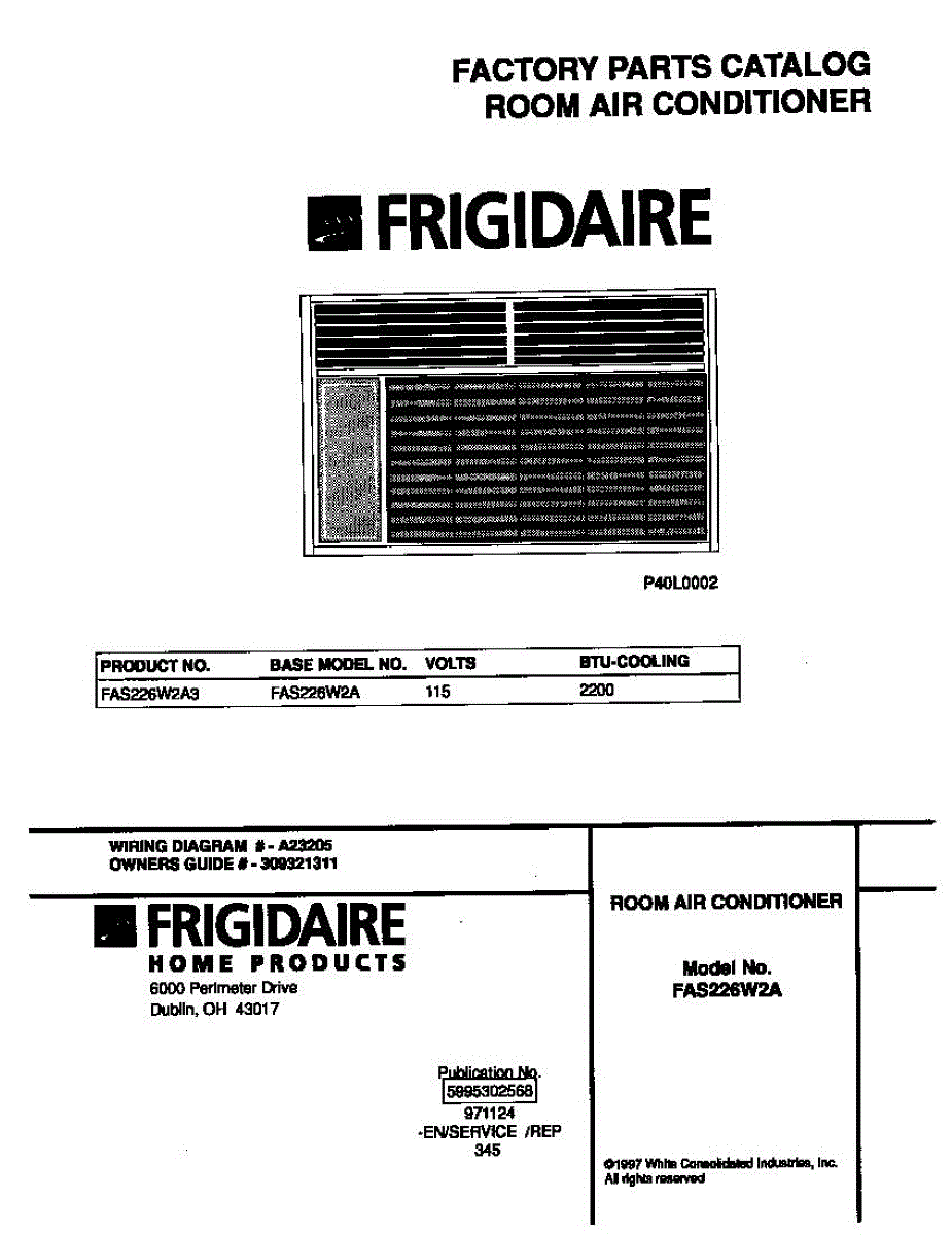 Parts for Frigidaire FAS226W2A3: 01 - Cover Parts