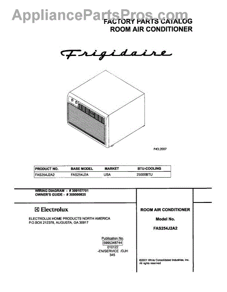 Parts for Frigidaire FAS254J2A2: 01 - Cover Parts