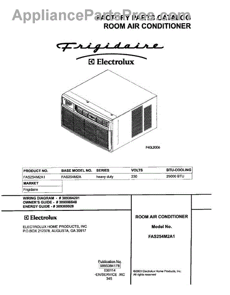 Parts for Frigidaire FAS254M2A1: 01 - Cover Parts