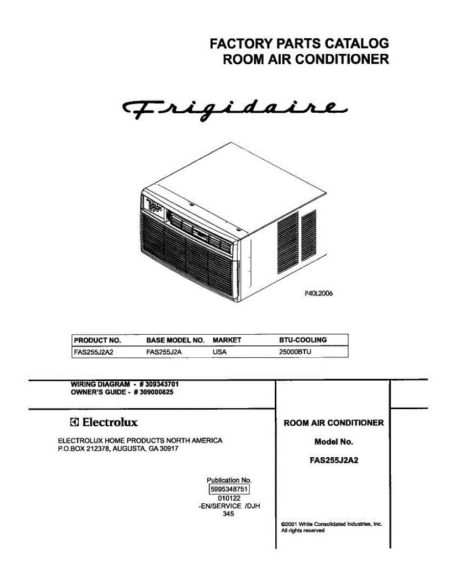Parts for Frigidaire FAS255J2A2: 01 - Cover Parts