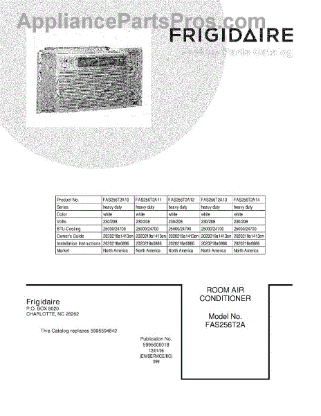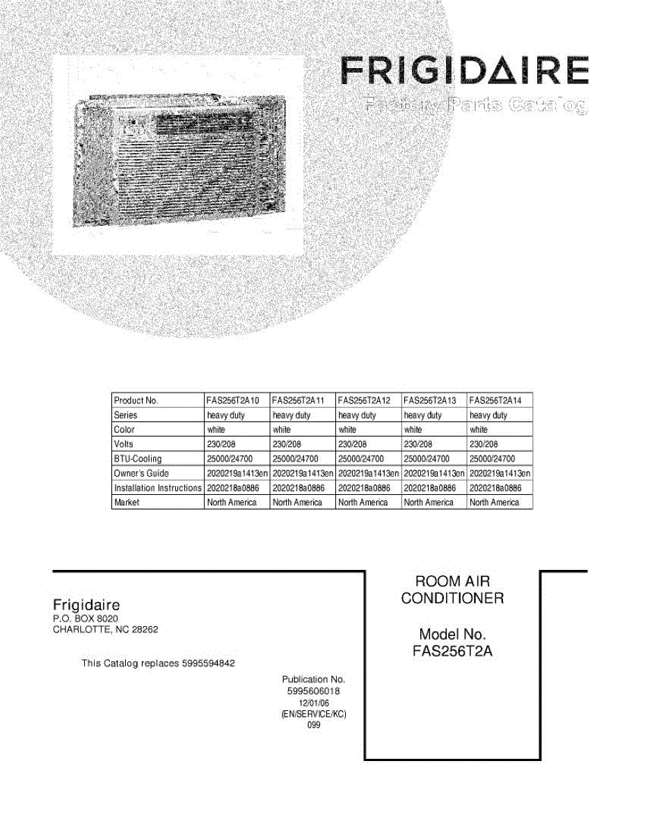 Parts for Frigidaire FAS256T2A11: 01 - Cover Parts