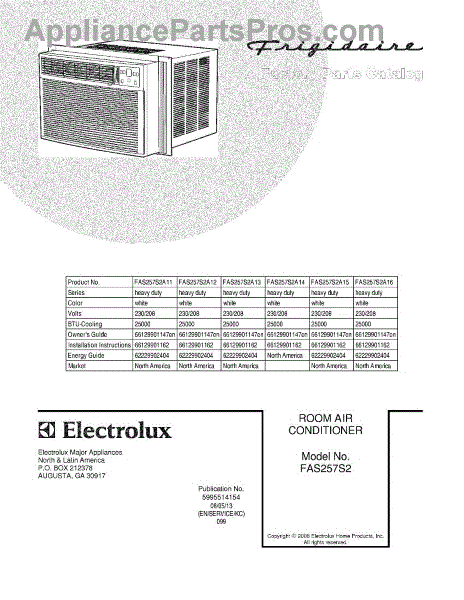 Parts for Frigidaire FAS257S2A13: 01 - Cover Parts