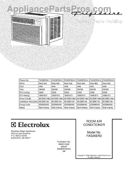 Parts for Frigidaire FAS25ER2A16: 01 - Cover Parts