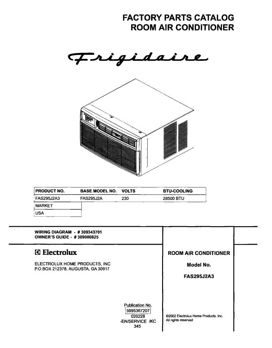 Parts for Frigidaire FAS295J2A3: 01 - Cover Parts