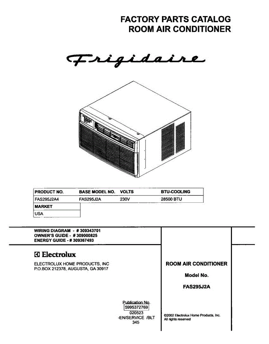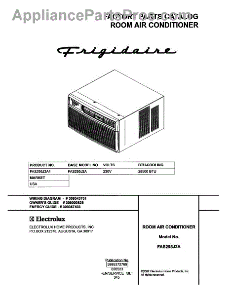 Parts for Frigidaire FAS295J2A4: 01 - Cover Parts