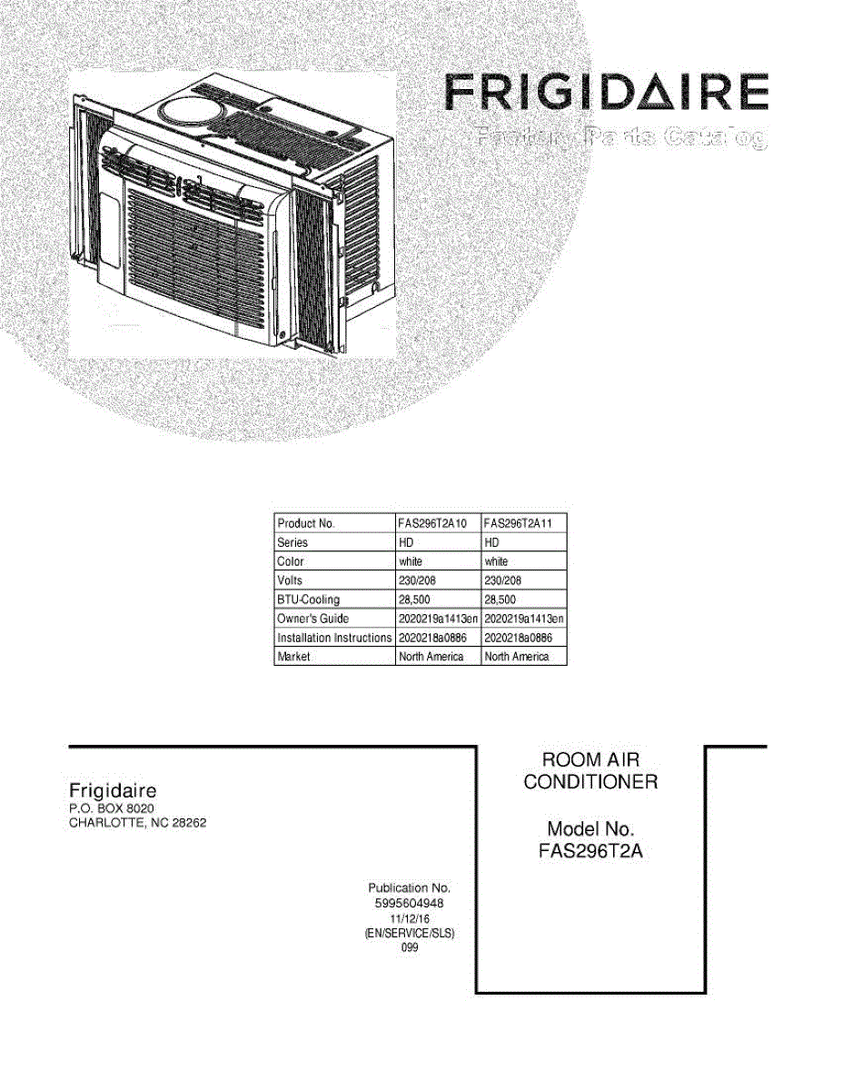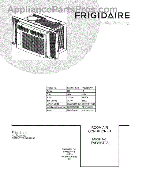 Parts for Frigidaire FAS296T2A10: 01 - Cover Parts
