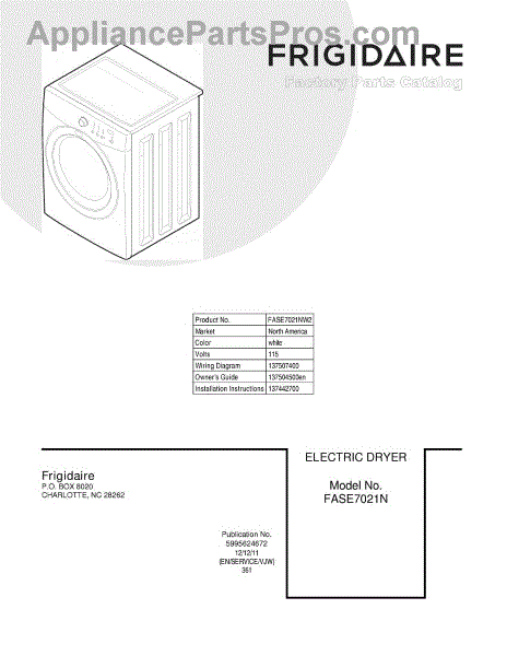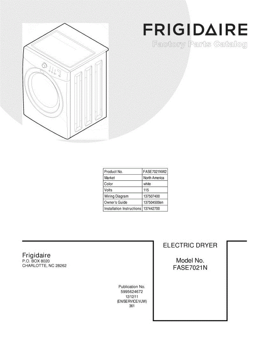 Parts for Frigidaire FASE7021NW2: 01 - Cover Parts