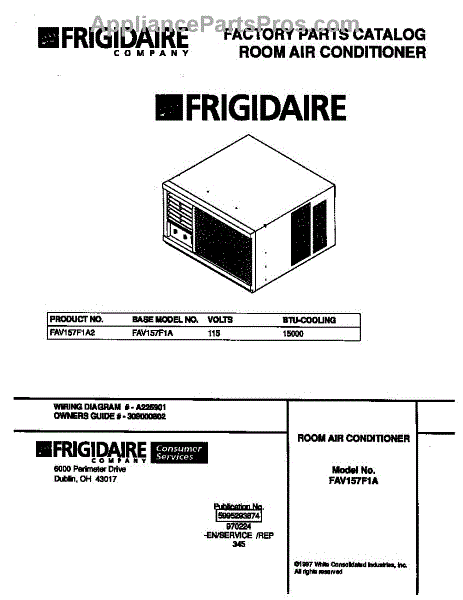 Parts for Frigidaire FAV157F1A2: 01 - Cover Parts