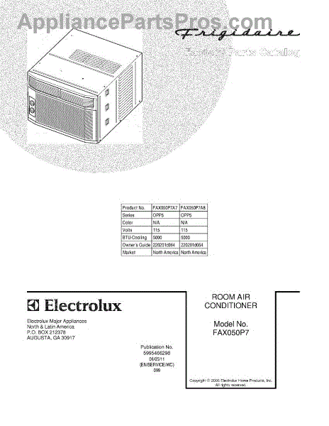 Parts for Frigidaire FAX050P7A7: 01 - Cover Parts