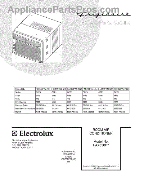 Parts for Frigidaire FAX050P7AENG5: 01 - Cover Parts