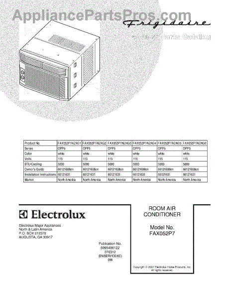 Parts for Frigidaire FAX052P7AENG4: 01 - Cover Parts