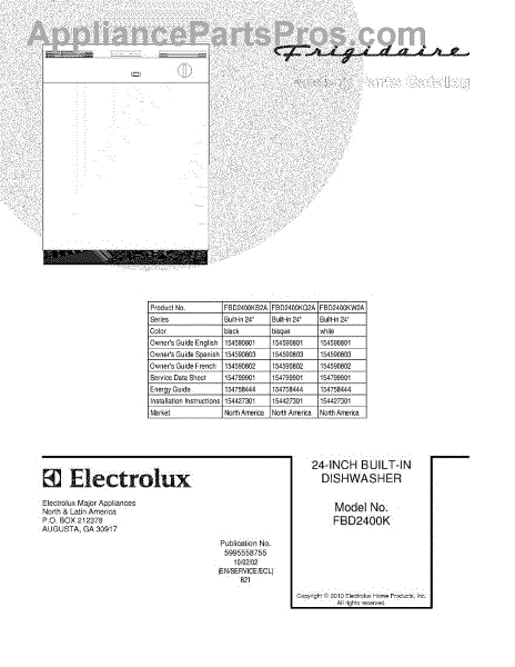 Parts for Frigidaire FBD2400KB2A: 01 - Cover Parts