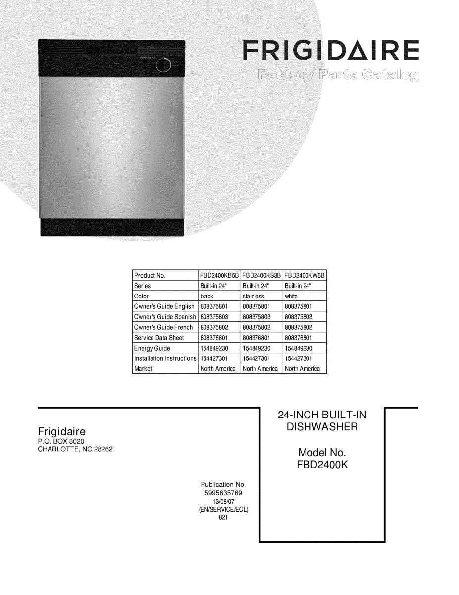 Parts for Frigidaire FBD2400KB5B: 01 - Cover Parts