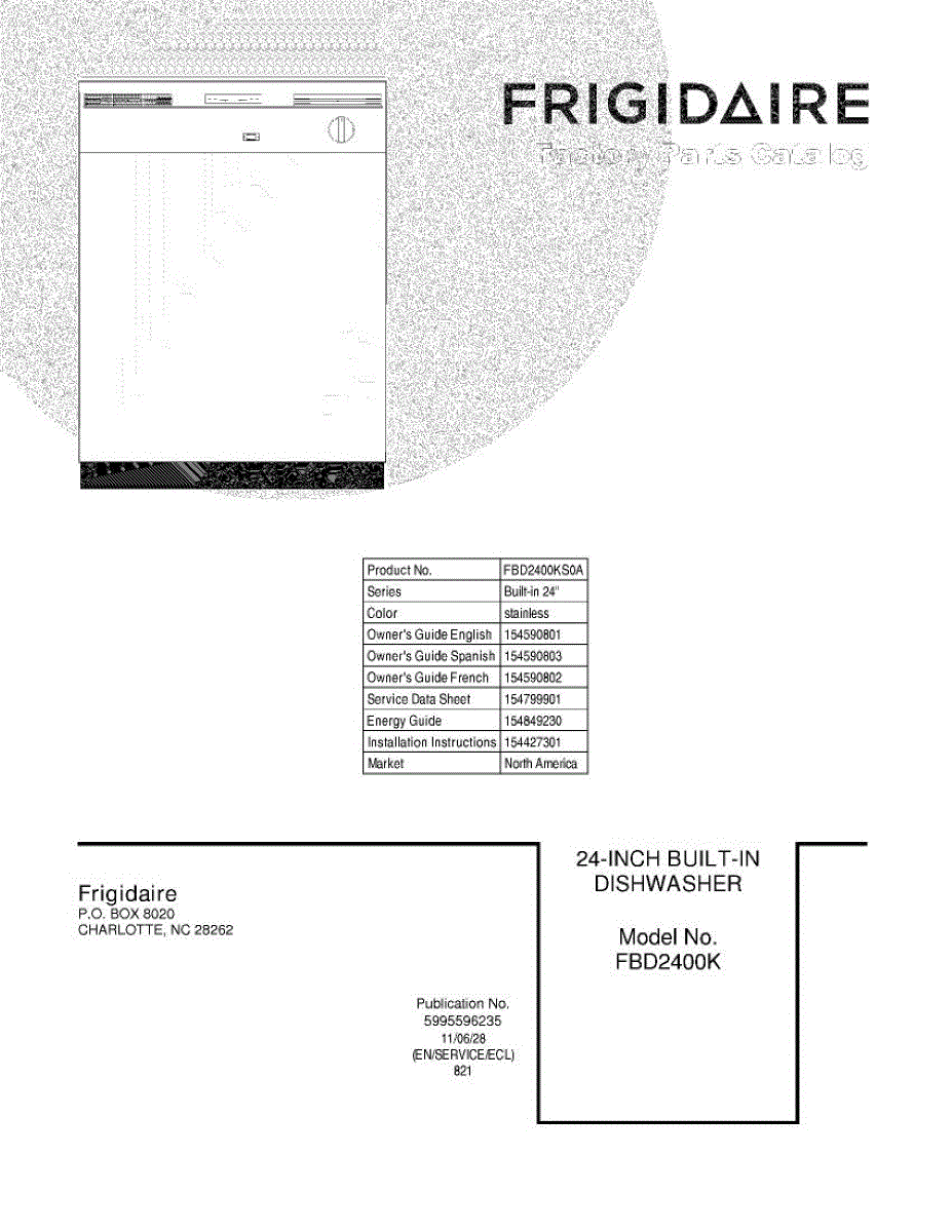 Parts for Frigidaire FBD2400KS0A: 01 - Cover Parts