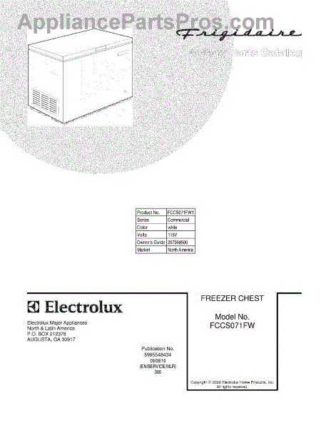 Parts for Frigidaire FCCS071FW1: 01 - Cover Parts