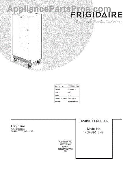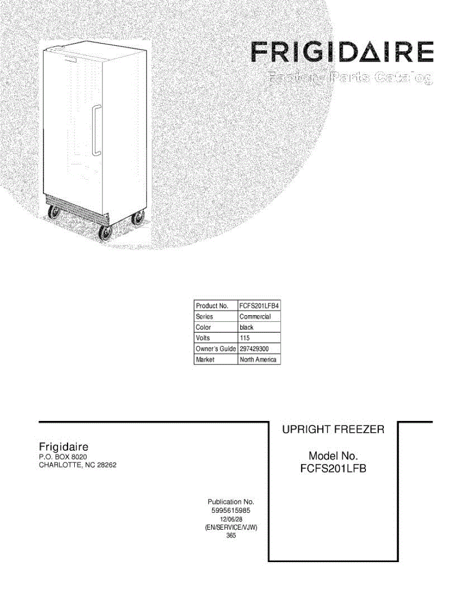 Parts for Frigidaire FCFS201LFB4: 01 - Cover Parts