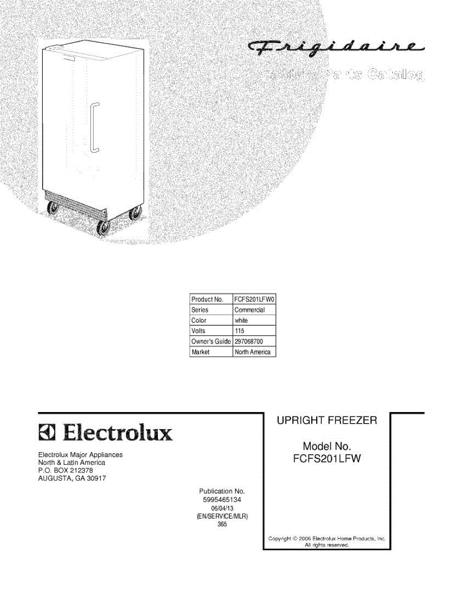 Parts for Frigidaire FCFS201LFW0: 01 - Cover Parts