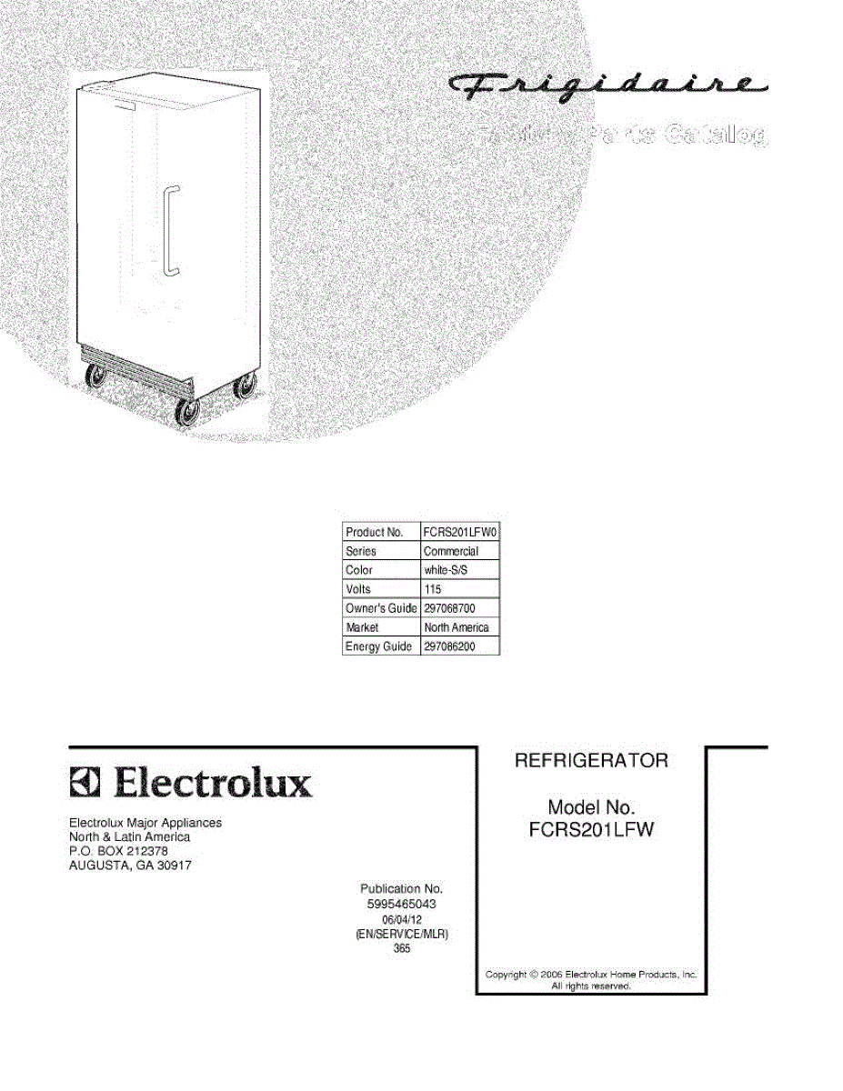 Parts for Frigidaire FCRS201LFW0: 01 - Cover Parts