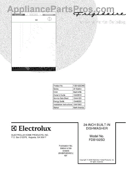 Parts for Frigidaire FDB102SDW0: 01 - Cover Parts