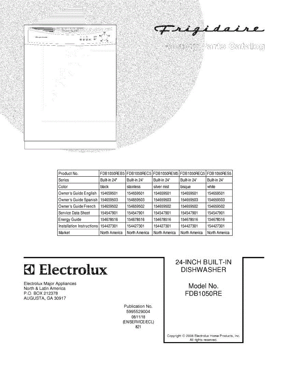 Parts for Frigidaire FDB1050REB5: 01 - Cover Parts
